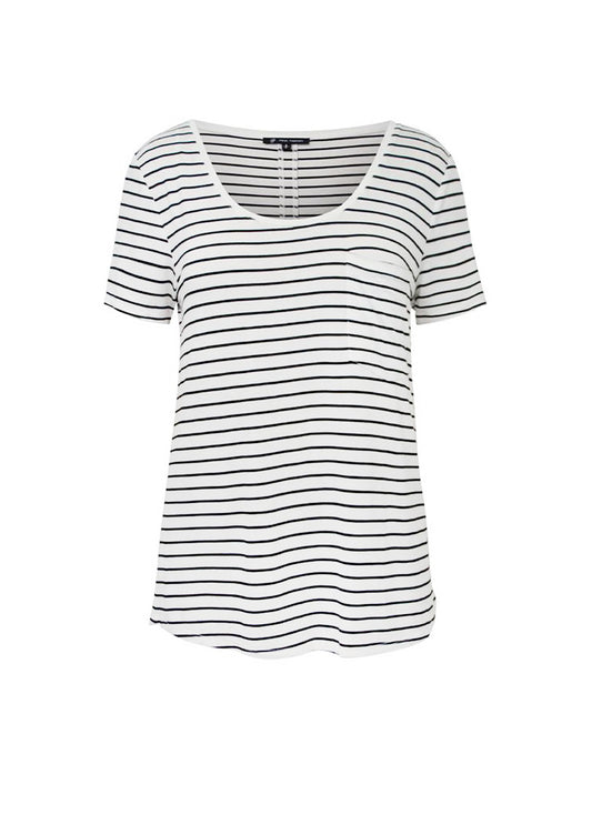 Scoop Pocket T-Shirt - Off White & Black Stripe