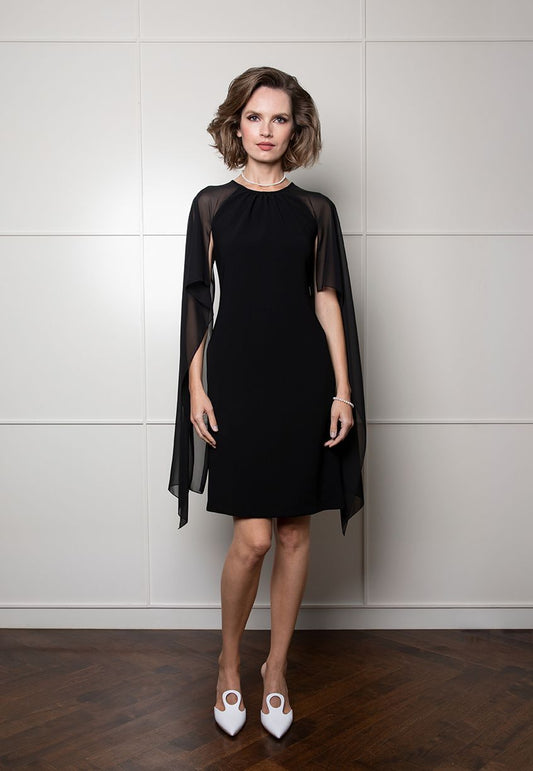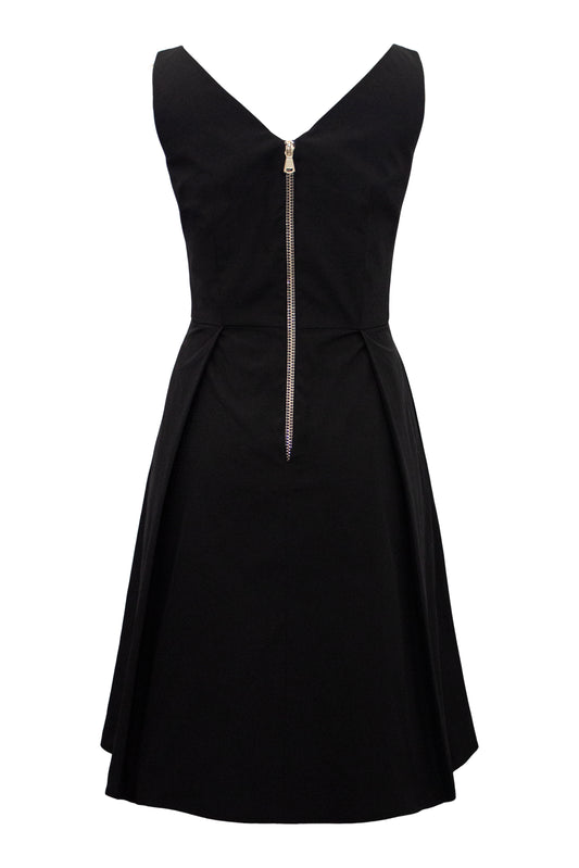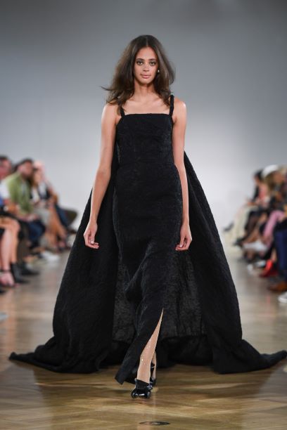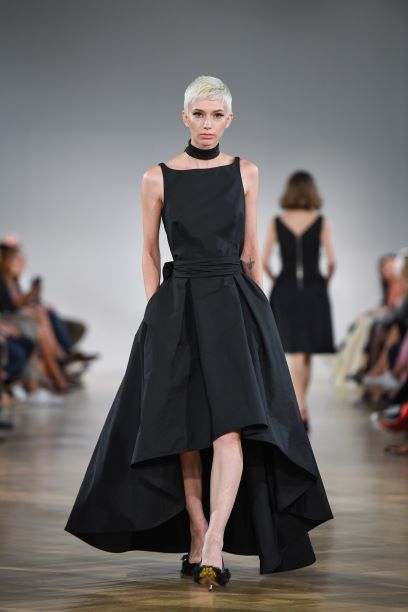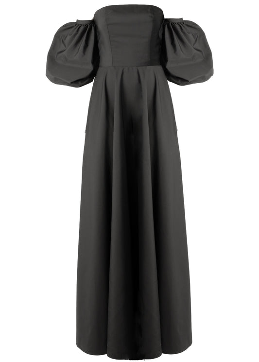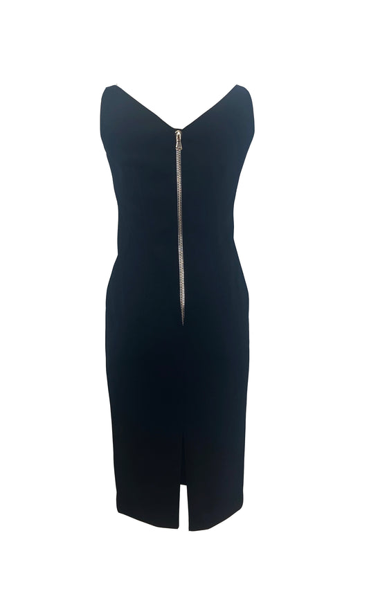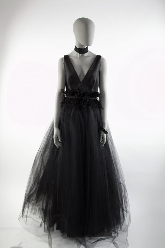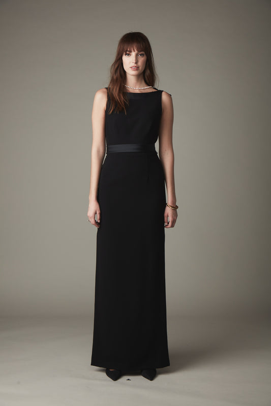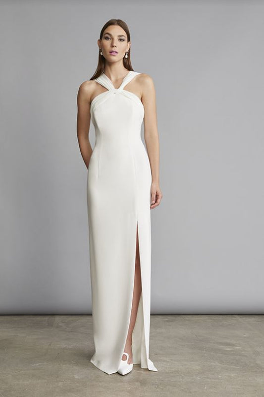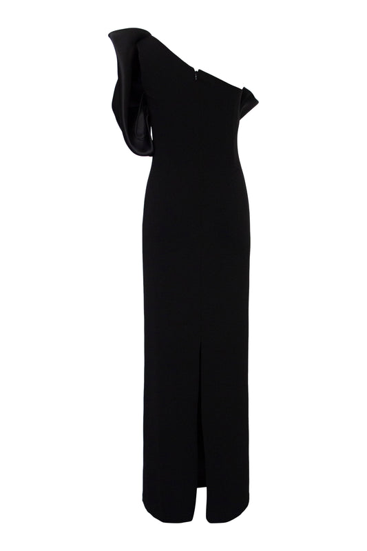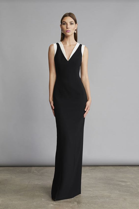 Crepe Black and White Contrast V-Neck Column Gown - Black