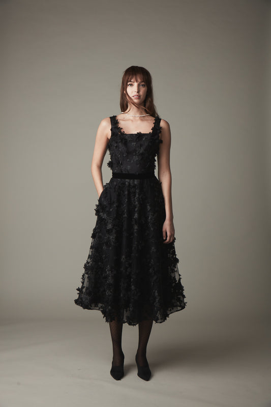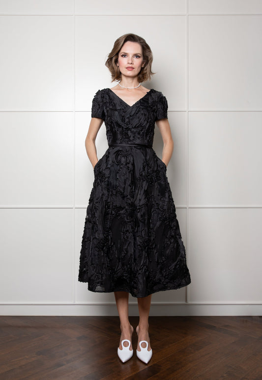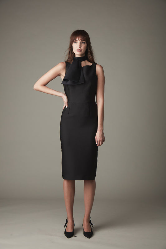 Doubleface Ballet Bow Cocktail Gown - Navy