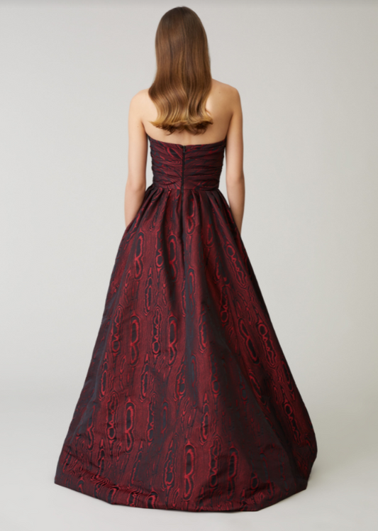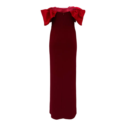 Off Shoulder Gown with Detachable Train - Bordeaux