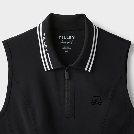 Quarter Zip Polo Dress - Black/White