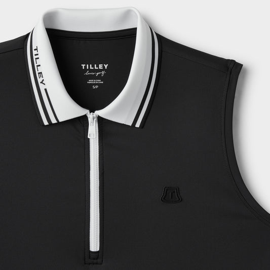 Tech Jersey Sleeveless Zip Polo - Powder Blue/Navy