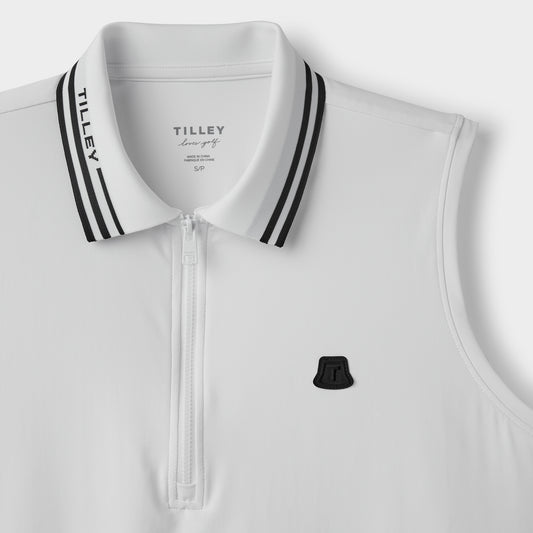 Tech Jersey Sleeveless Zip Polo - White/Sport Green