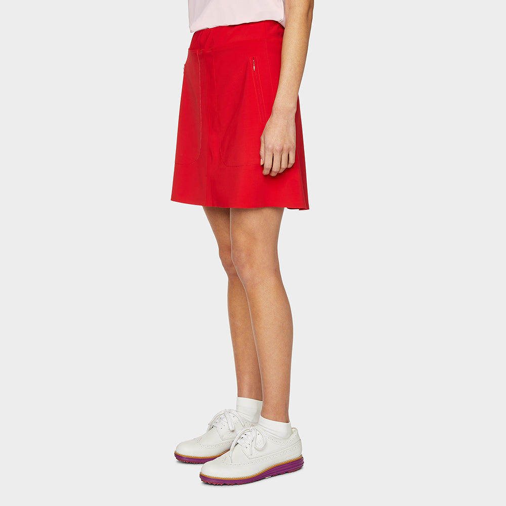 The perfect combination of feminine and functional, our A-Line Pocket Skort is the perfect summer skirt for any occasion. It is crafted from a soft four-way stretch nylon fabric and made to keep you dry and comfortable all day long. The deep pockets are great for your phone, wallet or any gear you need to carry with you during your active day and the seam sealed back pocket will help protect your green book while on court.