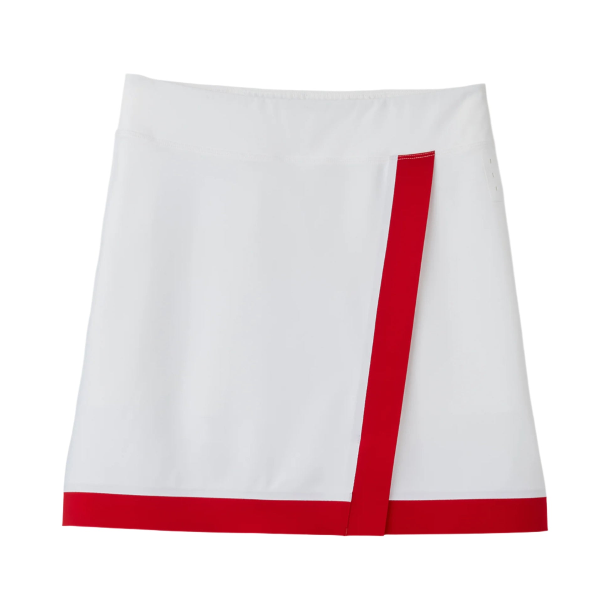 Our Contrast Stripe Skort is the perfect blend of style and function. With a classic A-line silhouette and relaxed fit, it's designed to flatter women of all sizes. The built-in shorts provide added coverage and flexibility for movement. The skort is accented with a hidden pocket, perfect for storing your tees or other small essentials while on the go. The waterproof welded seams add to the minimalistic look and feel, while ensuring that the skort is durable and long-lasting. Crafted from four-way stretch nylon, this Contrast Stripe Skort is incredibly comfortable and soft-to-the-touch, making it easy to wear all day long. The moisture-wicking fabric helps to keep you dry and cool, even during the most strenuous activities.