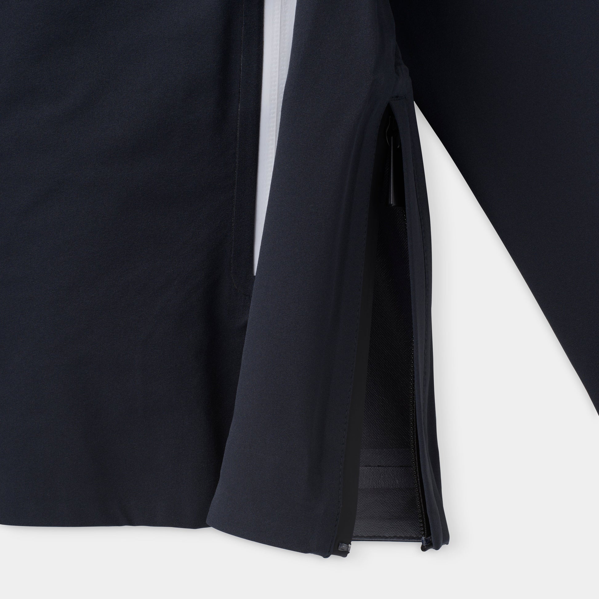 This rain jacket features a hidden hood tucked neatly in the zip collar, ready to shield you when needed. Crafted from Rainshield fabric, it combines windproof and water-resistant properties with an ultra-lightweight feel, ensuring you stay protected without added bulk. The jacket is fully seam-sealed and designed with mechanical stretch, allowing for unrestricted movement in any weather.