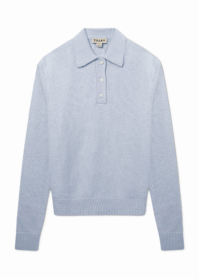 Merino Cashmere Polo - Light Blue