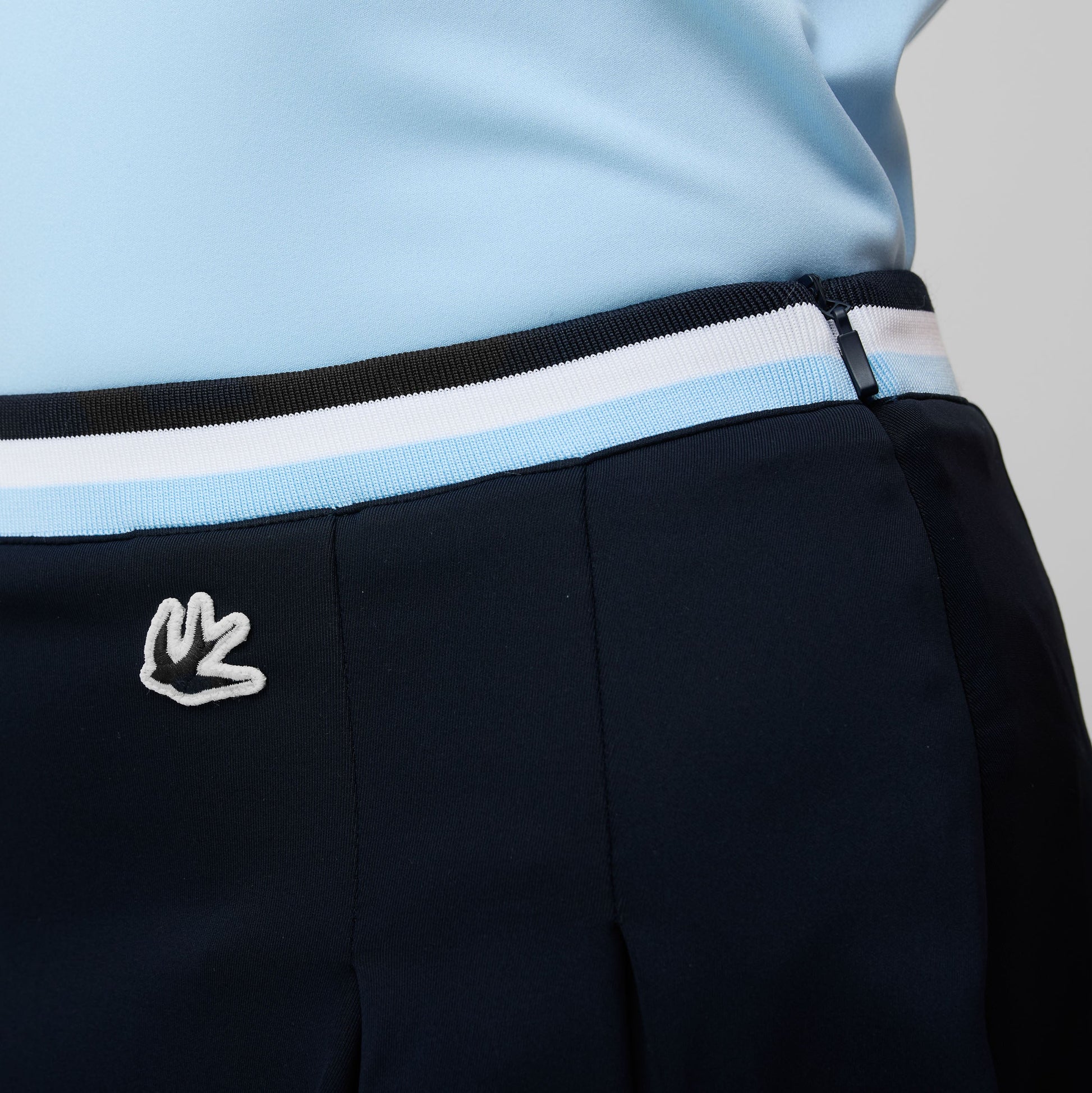This skirt features a striking multi-colored stripe waistband, bringing both style and performance together. Crafted from Airloft fabric, it offers UV protection and wrinkle resistance, ensuring you stay fresh and ready for action. The super cushy handfeel and soft touch add a luxurious feel, while the built-in short provides added coverage and convenience. Whether on the course or beyond, this skirt delivers the perfect balance of comfort, functionality, and sporty elegance.