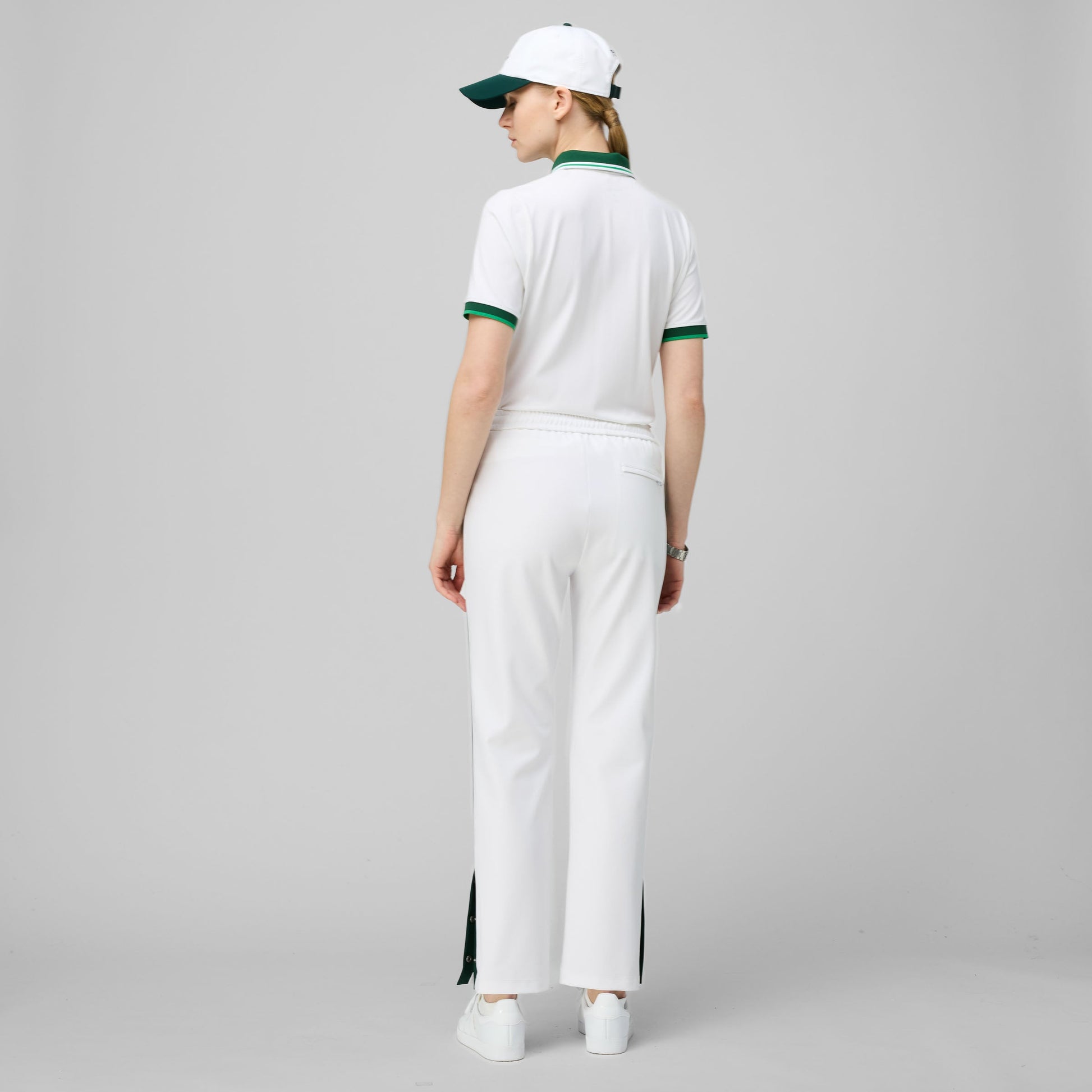 Elevate your game with our Super Twill Golf Pant, where timeless style meets high performance. Crafted from lightweight, stretchy twill, this pull-on pant features a flattering, feminine fit and side slits with snap closures, ensuring both elegance and ease of movement. The quick-drying fabric provides all-day comfort, while convenient pockets keep your essentials—scorecards, tees, and golf balls—within easy reach`