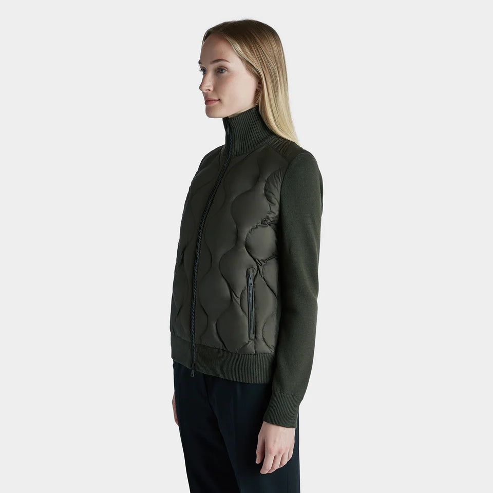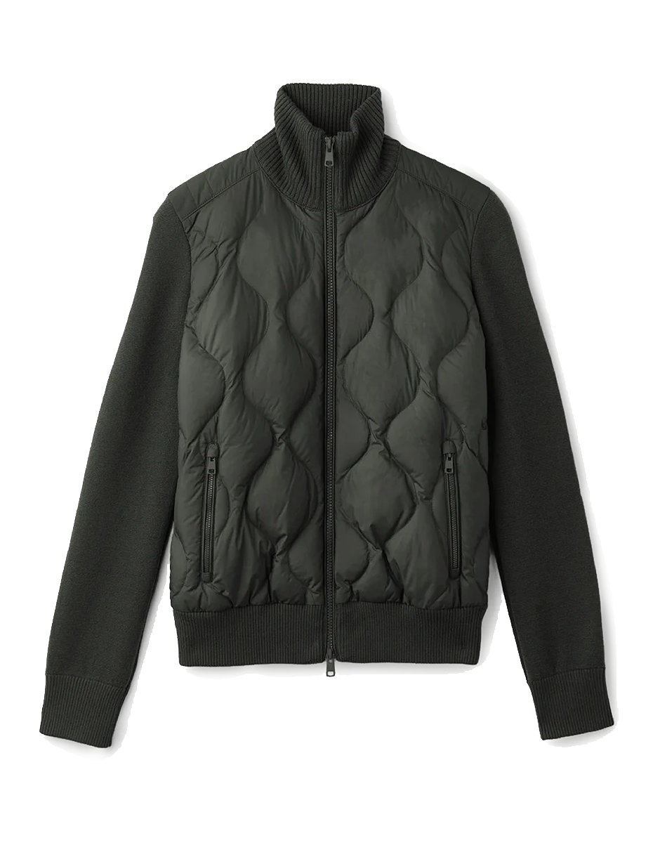 Your new constant travel companion, this Tilley hybrid down and sweater knit jacket offers all the qualities of merino wool performance and comfort with the warmth and protection of nylon and down fill.