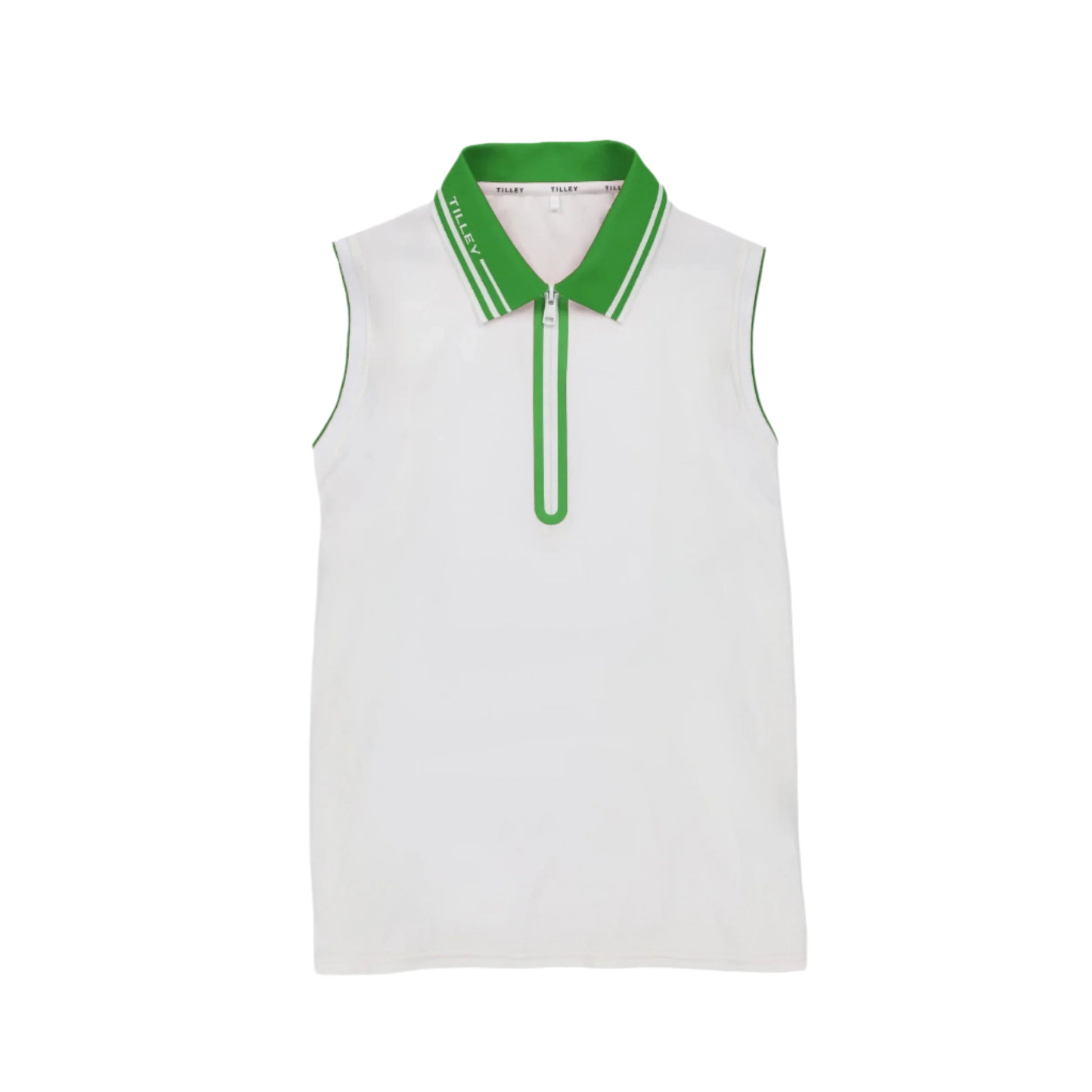Tech Jersey Sleeveless Zip Polo - White/Sport Green